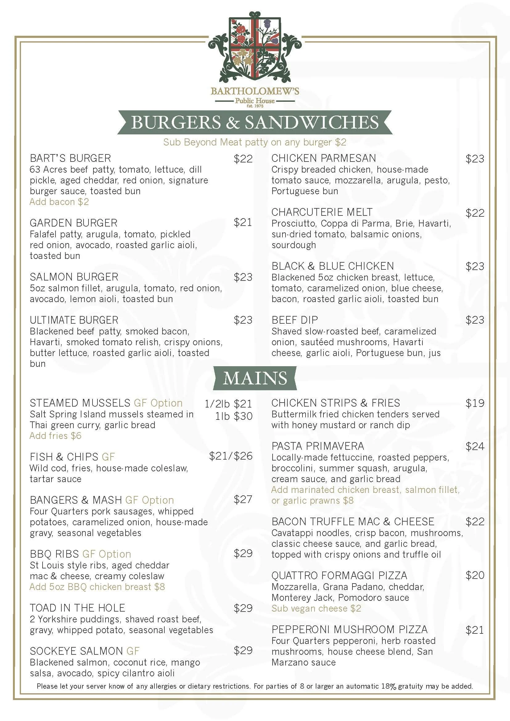 Dinner Menu